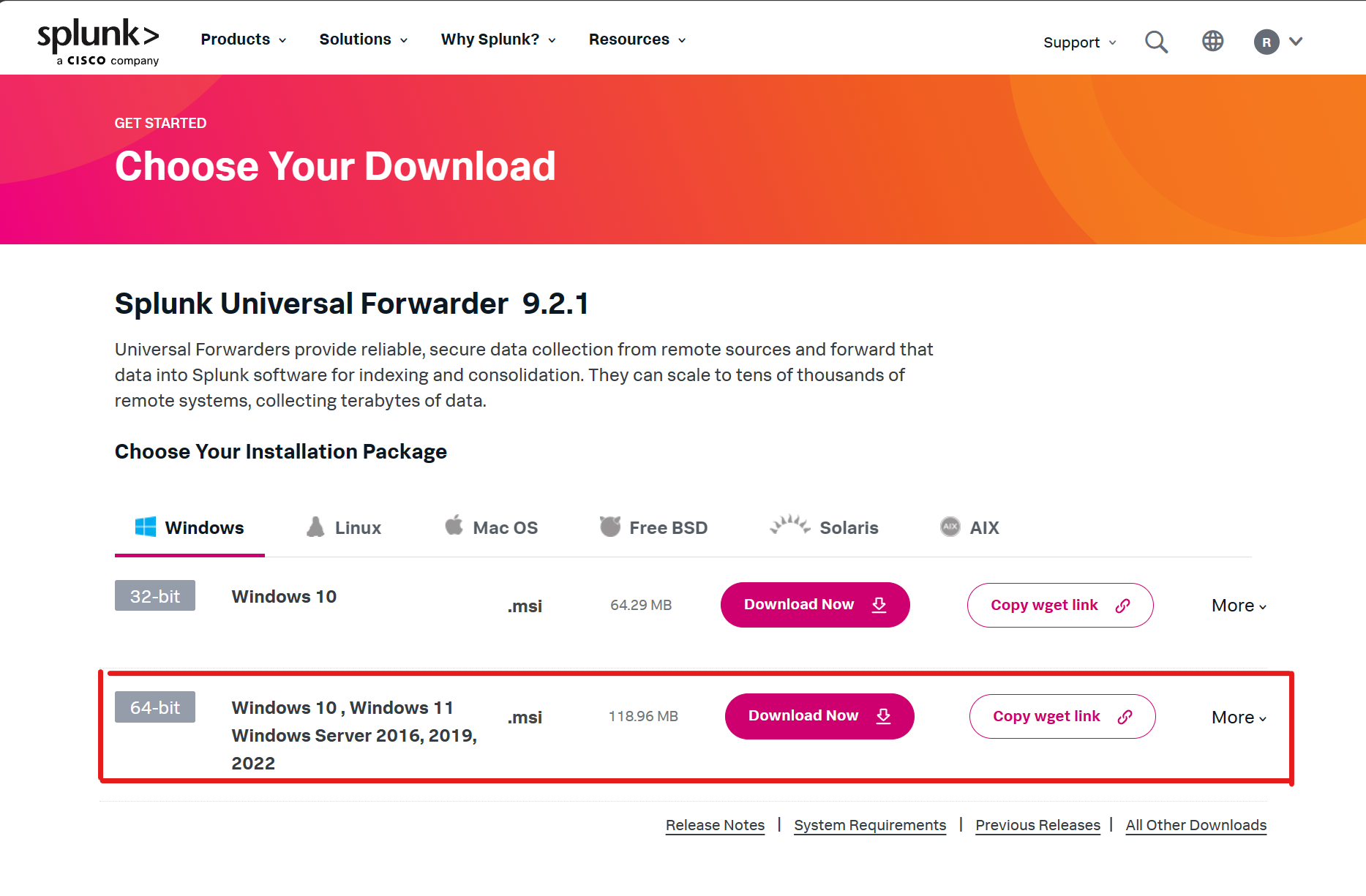 - Download the Splunk Universal Forwarder onto the Windows Host. Again, do so using your free account. I installed the 64-Bit Version: