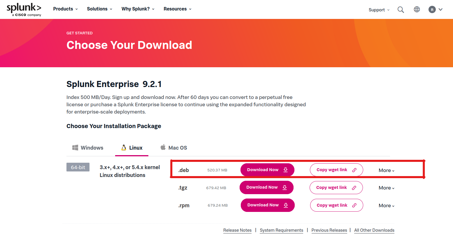 - First, you need to create a free account to download the free trial version of Splunk Enterprise. I have decided to download the .deb package: