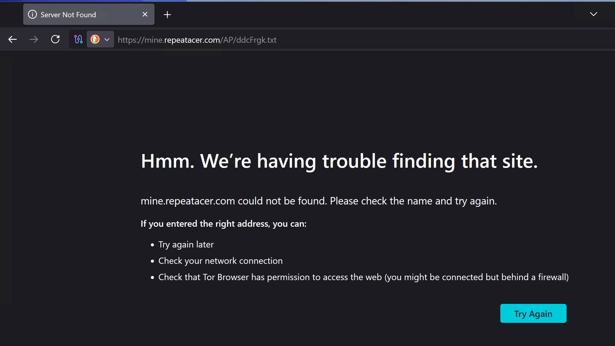| URL | hxxps://mine.repeatacer[.]com/AP/ddcFrgk.txt | Final payload download |