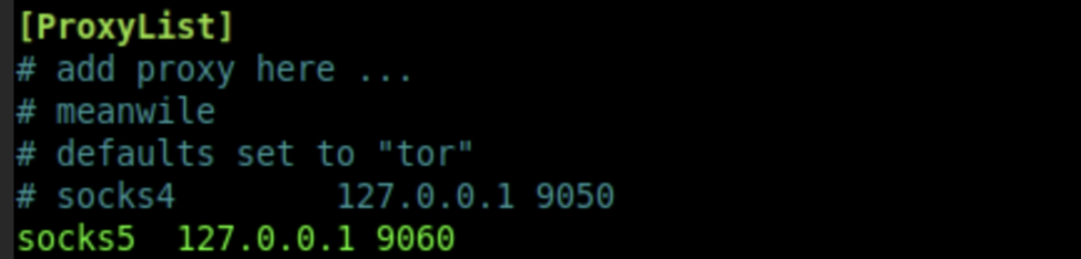 socks5 start -P 9060This will create a listening socket on port 1080, which will enable the beacon to communicate with the C2 server. Depending on the configuration in the /etc/proxychains4.conf we might have to adjust the used port from 1080 to something else.