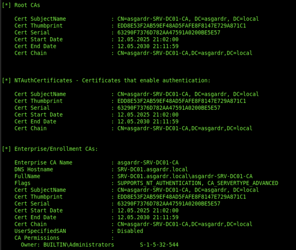 certify -- request /ca:"SRV-DC01.asgardr.local\asgardr-SRV-DC01-CA" /template:Machine /machine8 - Owning the Domain