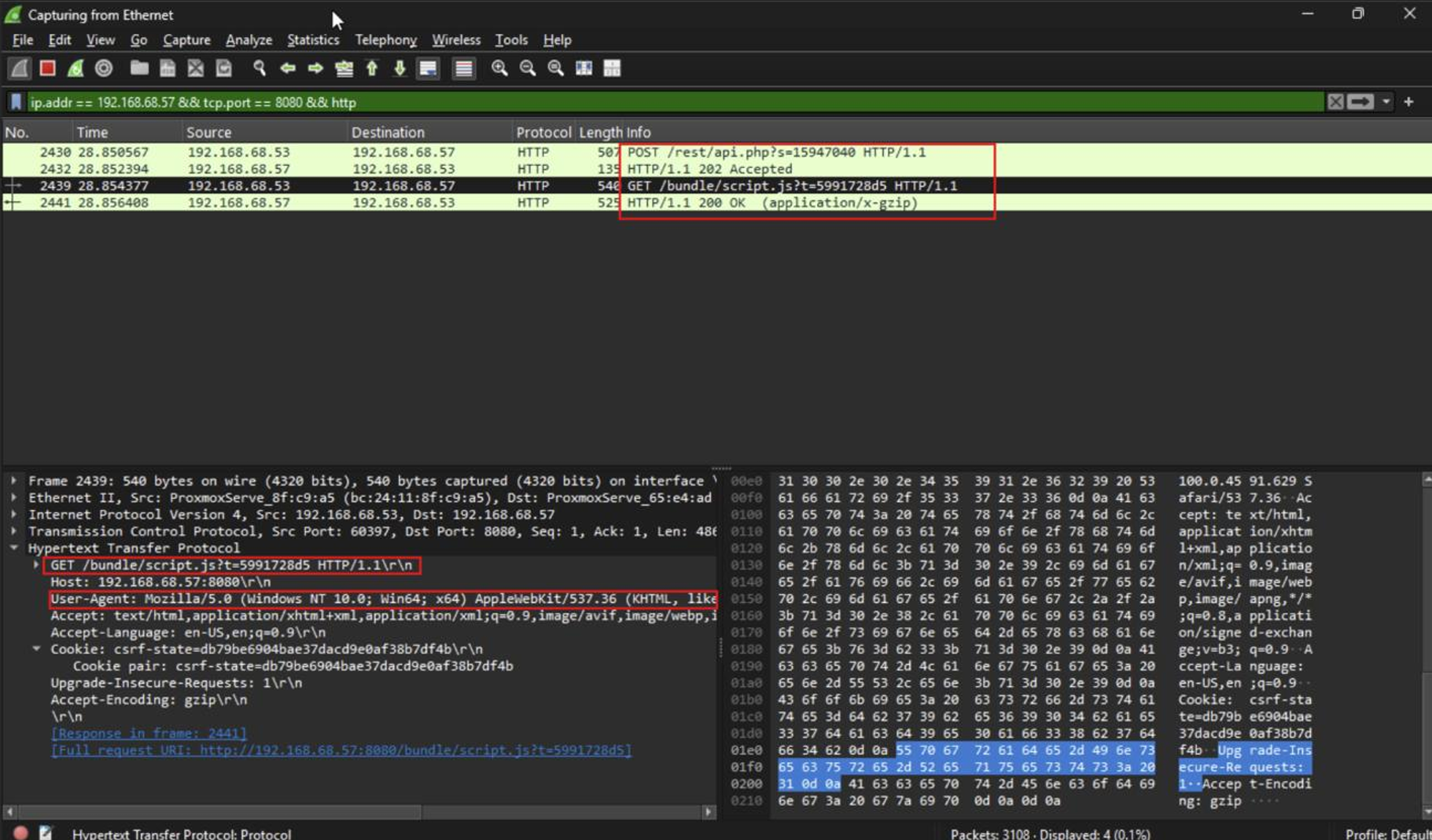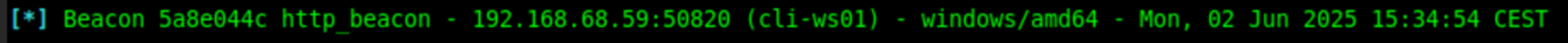 We should see this on our C2 server, indicating that it was indeed CLI-WS01 who performed the request (IP ending in 53):